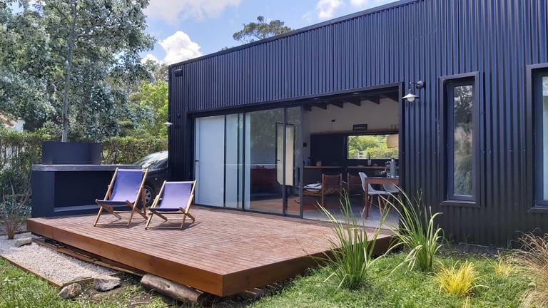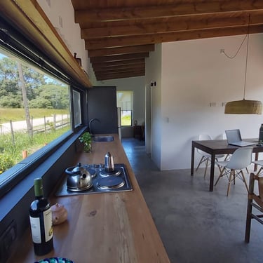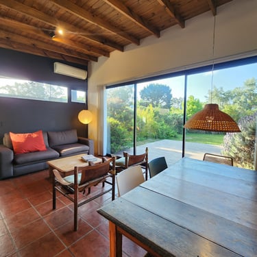 Esta casa de 70 m² con capacidad para 4 huéspedes fue pensada para disfrutar cada momento. Sus amplios ventanales inundan los ambientes de luz natural y conectan el interior con el exterior, creando una sensación de amplitud y calidez única.